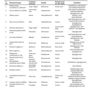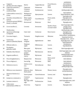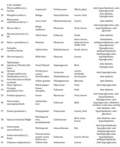 Medicinal plants play a significant role in the treatment of diabetes mellitus which is a serious metabolic disorder. Traditional plants are reported to have significant anti- diabetic properties with no harmful side effects. They are rich sources of anti-diabetic compounds such as flavonoids, alkaloids, phenolic and tannins that improve the efficiency of pancreatic tissues by increasing the insulin secretion or decreasing the intestinal absorption of glucose (Bindu & Narendhirakannan, 2019; Kooti et al. 2016)